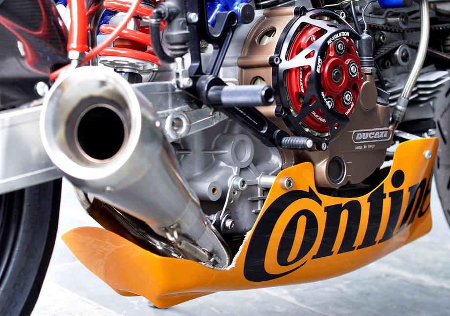 900-кубовый десмодромный твин Ducati был снят и полностью разобран, картер и горшки отпескоструены для освежения внешнего вида. Двигатель был перебран и доведён до совершенства: коленвал перебалансирован, установлены поршни под высокую степень сжатия, а головки цилиндров портированы для улучшения продувки. Облегчённый маховик и проскальзывающее сцепление сделали переключение передач мягким и чётким, а система зажигания была переделана на современную Silent Hektik.