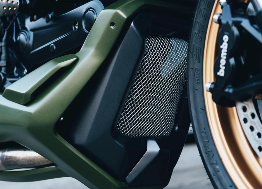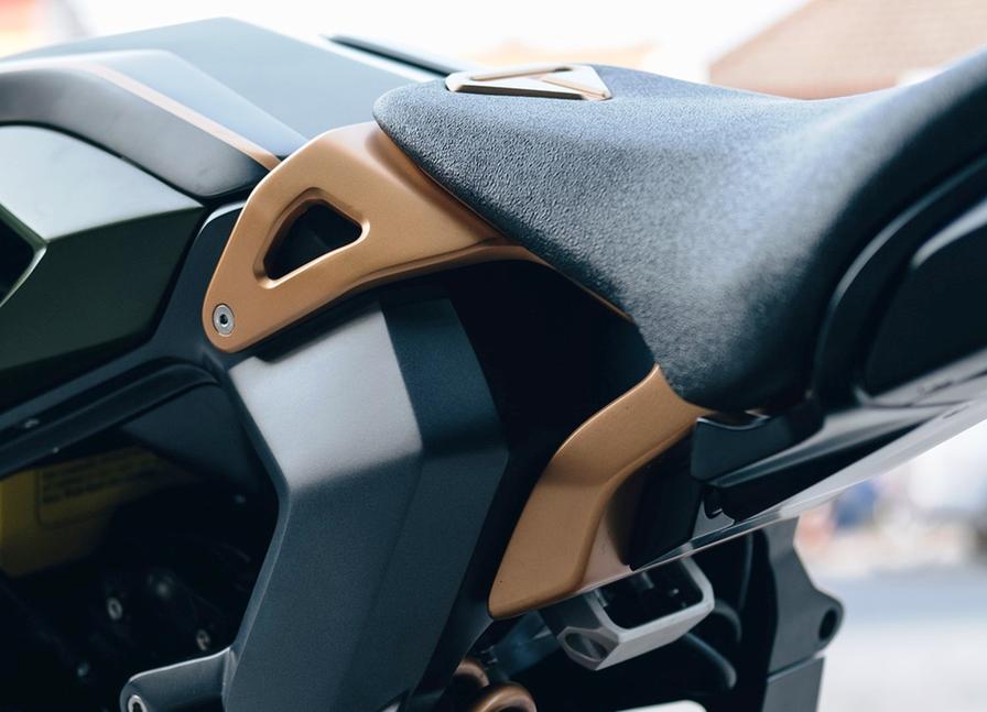 Каждый его элемент был изготовлен вручную из листового алюминия, воплощая черты Lamborghini. Под новым подрамником расположено заднее крыло-хаггер, состоящее из невероятных форм и углов, перекликающихся с защитным поддоном, обрамляющим L-твин. Мотор с воздушным охлаждением красуется двумя зарешёченными легкосплавными рамками, одна из которых направляет воздух к масляному радиатору, а вторая обдувает передний цилиндр. Но настоящая магия находится выше всего этого: одна только детализация крышки бензобака, крыльев и воздуховодов даёт понять, почему на этот проект ушло целых девять месяцев.