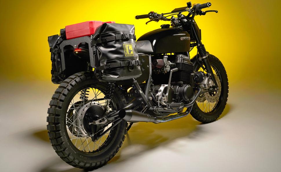 Для того, чтобы сделать Honda CB 750 более практичным в путешествиях, Wolfman Luggage предоставили Майку комплект кофров Expedition Dry Bags. Майк также установил две дополнительные диодные фары от Clearwater Lights, выдающие 10000 люмен яркого света и имеющие регулировку мощности.