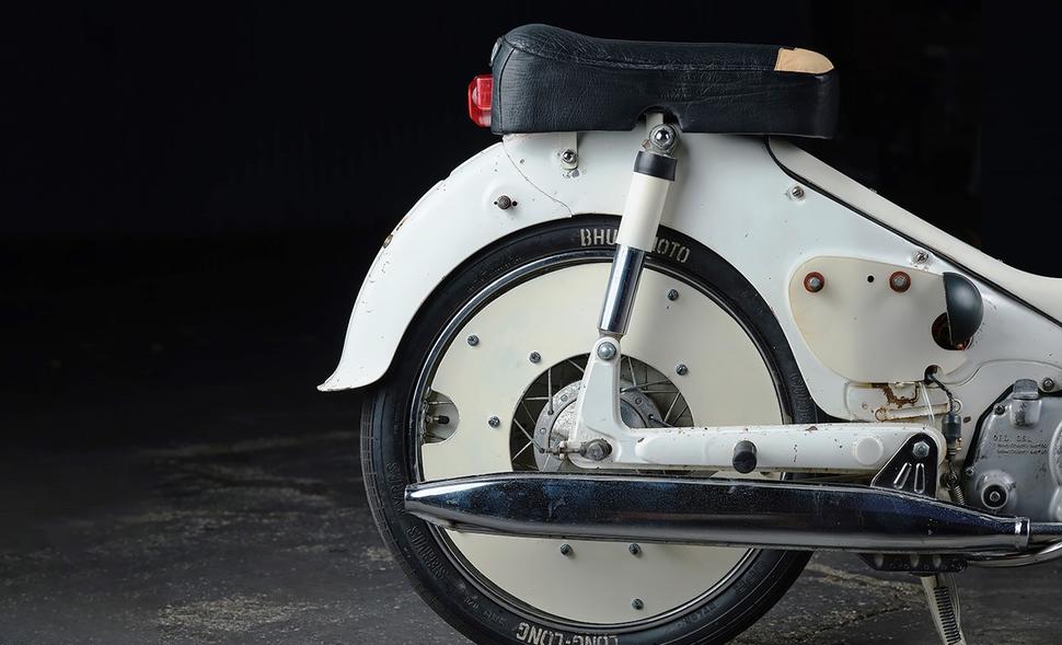 Частично магия состоит в бесчисленном количестве оригинальных компонентов Super Cub, которые Bhumemoto подправили и настроили вместо того, чтобы их просто выкинуть. Колёса оригинальные, только заднее заключено в кастомные заглушки и обуто в чуть более пухлую резину, чем раньше.
