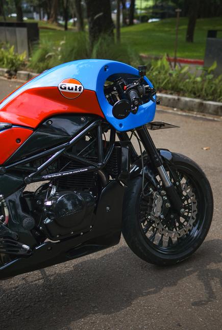 На самом деле Эйнштейн предпочитал педальный привод, но его слова абсолютно актуальны. И если есть где-то место, в котором берут самые простенькие мотоциклы и дают волю воображению, то это Индонезия. Государство, состоящее из 17 тысяч островов, перевернуло кастом-сцену пять лет назад, и индонезийские мастера-кастомайзеры продолжают расширять границы во всех смыслах. Взять, к примеру, этот мотоцикл: он начал свою жизнь как городской круизёр Benelli Patagonian 250, но команда MWM Custom из Западной Джакарты превратила его в небольшой своеобразный спортбайк в расцветке тропической древесной лягушки.