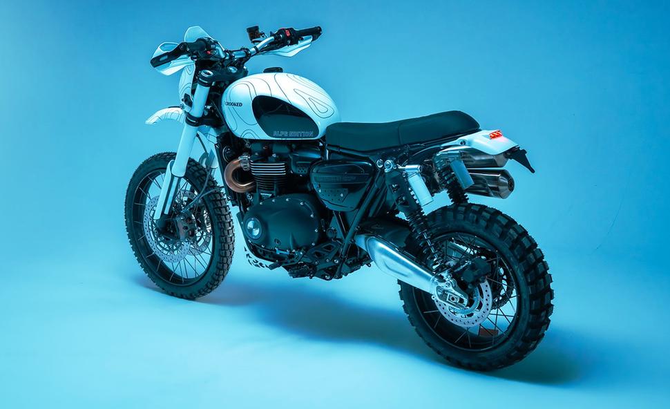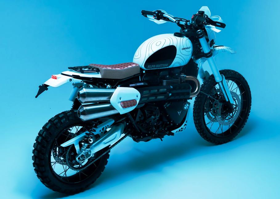 Новая стратегия Crooked состоит в том, чтобы сосредоточиться на определённых марках и моделях, и разрабатывать для них комплекты, которые можно установить в простом гараже. Начали они с кастом-комплекта для Triumph Scrambler 1200, который окрестили "Alps Edition". Но они планируют разрабатывать не менее двух комплектов в год, ориентируясь на разные мотоциклы и стили.