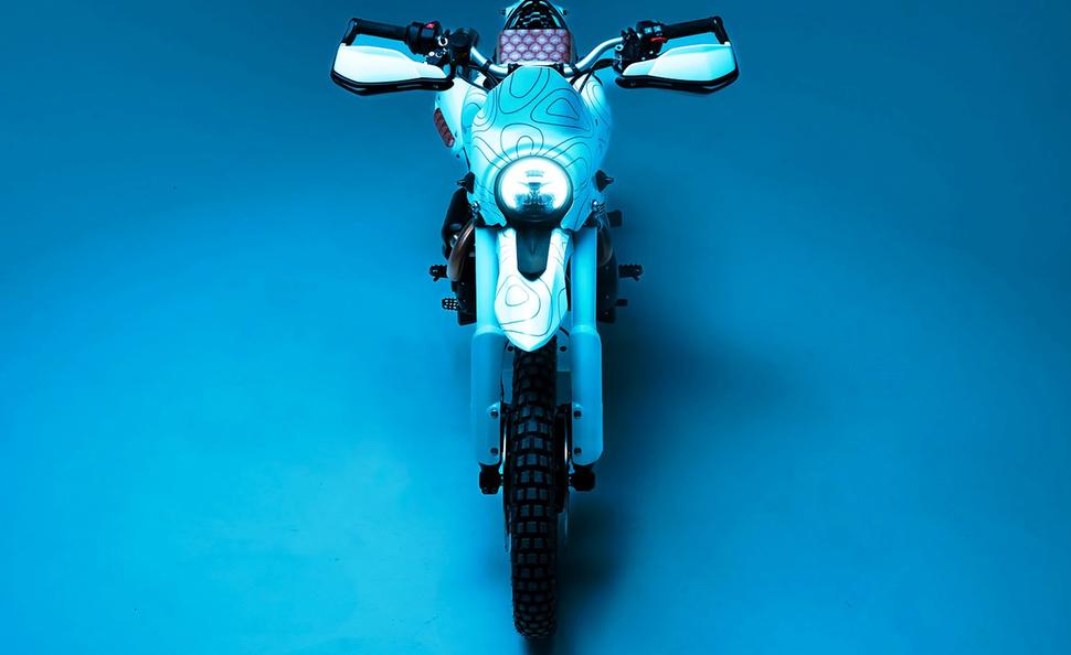 Прототип Alps Edition носит строгую белую ливрею с топографическим рисунком на ней. Чёрная и белая отделка на некоторых компонентах дополняет минималистичную атмосферу. Всё это не слишком отходит от заводской версии Triumph Scrambler 1200, но производит солидное впечатление без лишней пестроты.