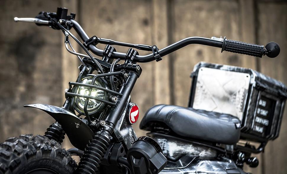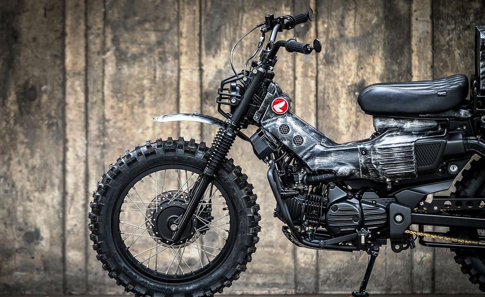 Так что они превратили хоть и внедорожный, но мирный и домашний мотоциклик в боевую машину - в буквальном смысле. Такой облик испортил бы практически любой другой байк, но именно Honda CT125 чертовски украсил!