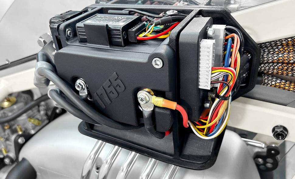 Штатные карбюраторы Bing были упразднены, и вместо них установлены сдвоенные карбюраторы Weber через напечатанный на 3D-принтере манифольд. На входе в них надеты поролоновые фильтры Uni, и поскольку карбюраторы вынесены далеко назад, тросик газа приводит дроссельные заслонки через самодельный рычаг.