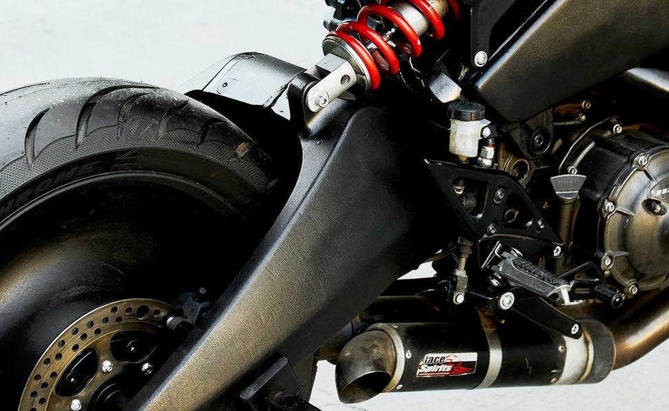 Задний амортизатор изготовили под заказ Gears Racing, а выхлоп от Race Spirits, говорят, не слишком хорош, если у вас есть соседи, которые любят вздремнуть.