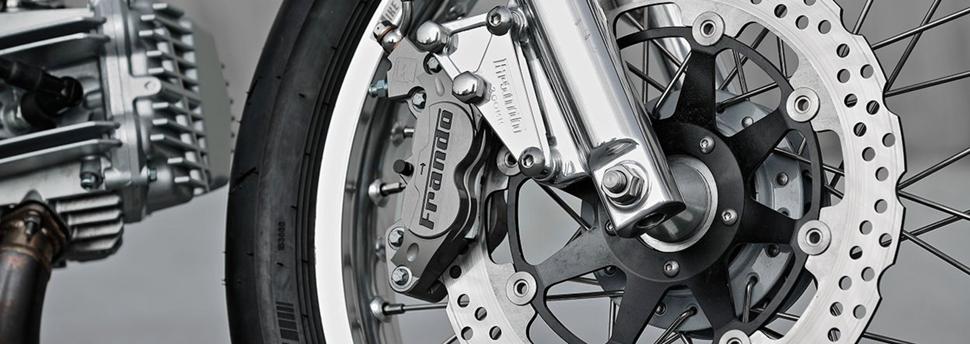 Спереди установлена вилка от SYM Wolf - 250-кубового городского мотоцикла, популярного в Тайване. 2LOUD укоротили и отполировали её, затем оспицевали пару алюминиевых ободов (18-й спереди, 17-й назад) нержавеющими спицами на ступицах от SYM.