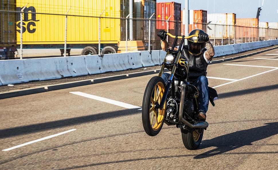 Калифорнийская мастерская Роланда Сэндза известна как кастомами, так и тюнинговыми запчастями для мотоциклов, так что они с радостью воспользовались возможностью испытать на этом мотоцикле несколько компонентов для Royal Enfield 650-й серии. Но что касается самого проекта, то команда зашла намного дальше установки пары болт-он запчастюлек, придающих мотоциклу быстрый внешний вид.