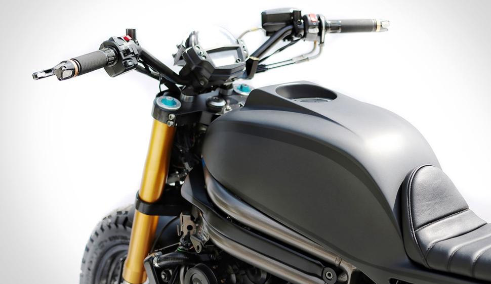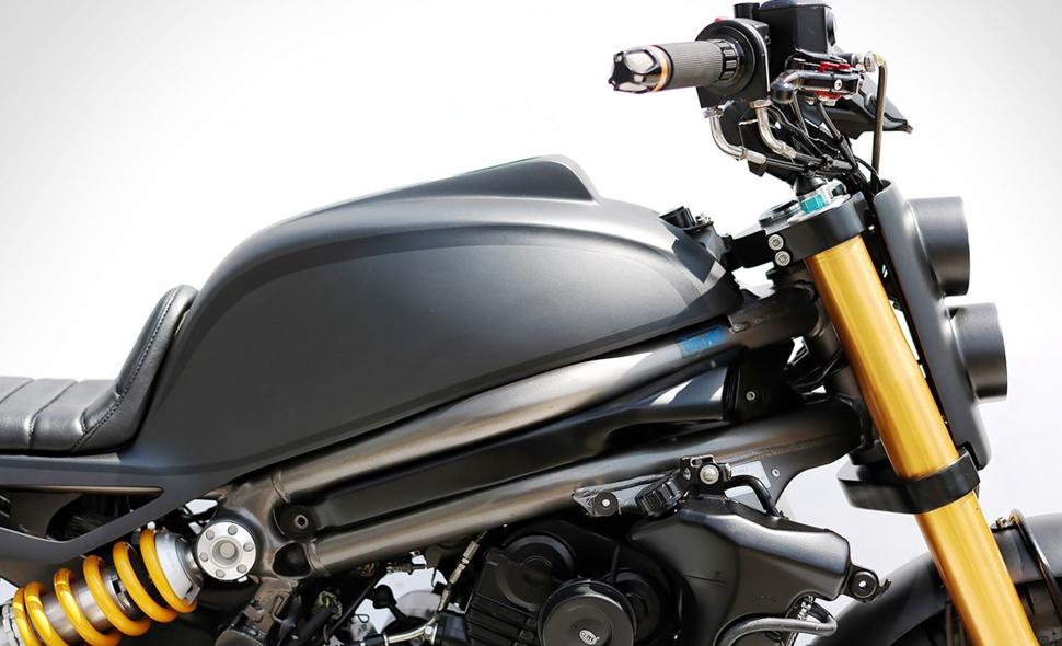 К вопросу окраски Studio Motor решили подойти как можно проще: они обратились в Komet Studio, и те нанесли матовую тёмно-серую основу с несколькими чёрными акцентирующим полосками, подчёркивающими новый силуэт.