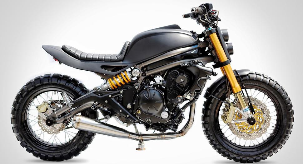 А вот ребята из Studio Motor на базе такого Ерша построили клёвый стрит-трекер. Вообще кастомы из Kawasaki ER-6n делаются довольно редко, но индонезийская мастерская уже сделала несколько таких, и даже выставила в свой прокатный парк. И по их мнению, 649-кубовая рядная двойка и неплохое шасси заслуживают более красивой внешности.