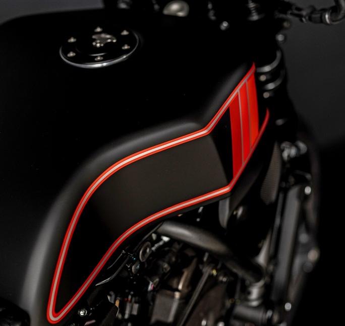Рядник Yamaha выдаёт солидные 74 лошади, которых вполне достаточно для байка весом 186 килограммов. Так что Арьян оставил внутренности мотора без изменений, заменив только воздушный фильтр на нулевики DNA с отделкой из красной кожи.
