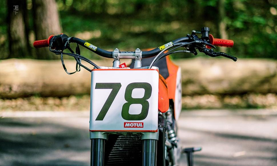 С чёткими линиями и изящной комплектацией KTM нуждался в новой окраске. Ребята остановили свой выбор на шикарном цвете - том самом красном, который Honda использовала для своего CR500 в конце 80-х. Должно быть, Патрику ужасно хочется поскорей вывезти его на трек… и наверняка он весьма доволен, что не остановился на "и так сойдёт"!