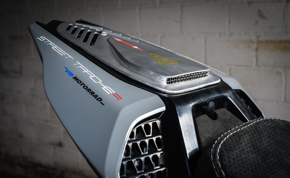Как и в случае с XR, BMW S1000RR начали раздевать. Но на этот раз VTR проявили сдержанность и сняли только половину пластика вместо того, чтобы полностью убирать его. Затем наступил черёд проработки хвоста. VTR - официальный поставщик комплектующих JvB Moto parts (производимых компанией Kedo), и по случаю у них имелась в наличии пара универсальных хвостовых секций JvB.