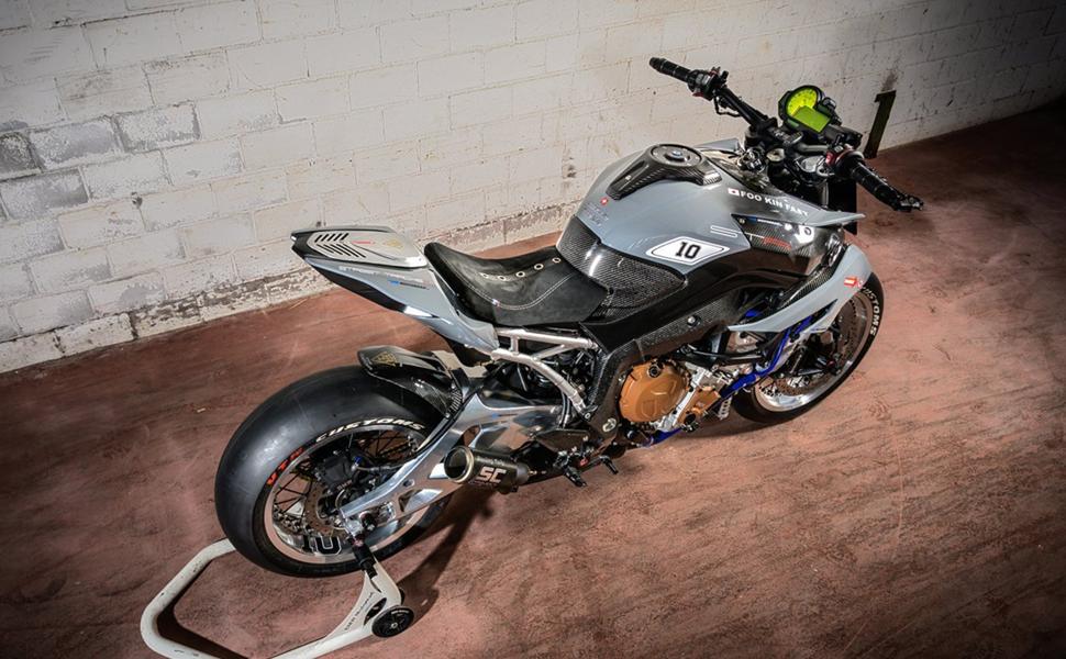 После некоторых дискуссий парни остановились на длинном варианте хвоста и доработали подрамник BMW S1000RR для его установки. Звучит просто, но на деле это была та ещё задача, в основном из-за необходимости переноса целой кучи электронных компонентов. Ещё одной непростой задачей стала установка номерного знака, с которой команда успешно справилась, изготовив кастомное крепление. На бак также была установлена крышка Rizoma, пульты обновлены, а колёса обуты в Metzeler RaceTec.