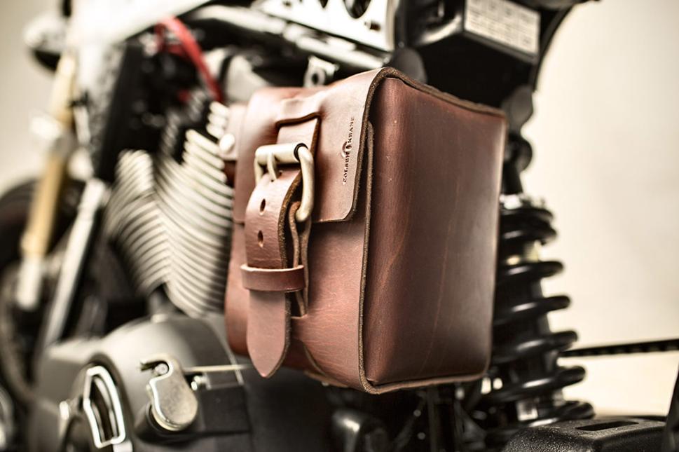 Из алюминия были вырезаны треугольники, которые должны поддерживать сиденье, а также с их помощью были спрятаны электронный блок управления и коробка предохранителей. Аккумулятор заменили на более маленький экземпляр фирмы Ballistic. Но его и некоторые другие электрические компоненты требовалось где-то разместить. Для этого в процесс были вовлечены местные кожевенные мастера Colsen Keane, которые сделали специальную кожаную сумку.