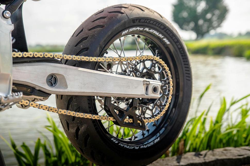 У двигателя есть несколько режимов мощности, а в режиме Crawl (“Ползком”) есть даже задний ход для лучшей манёвренности. Тормоза - суппорта Brembo на дисках Galfer, а подвески от KYB представлены вилкой с закрытыми картриджами и полностью регулируемым задним амортизатором.