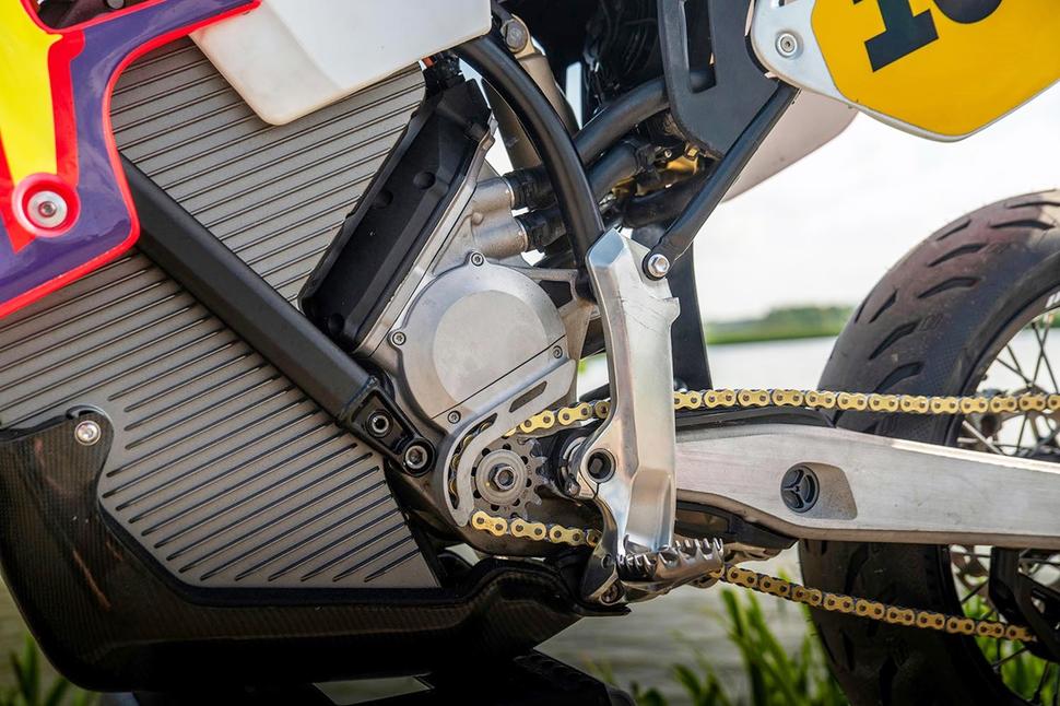 Любимая многими легенда в мире внедорожных мотоциклов, Honda CR500, была идеальным вариантом. Ребята заказали для Stark Varg полный комплект аутентичного пластика для CR 1995 года и кучу хондовских деталей для переделки.