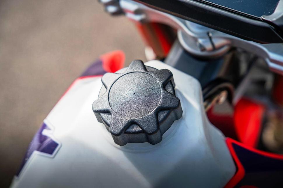 Большое переднее крыло установили первым делом, и встало оно как родное, прямо между перьями в верхнем положении. Так что используя свои высокотехнологичные навыки для завершения переделки, ребята попросту напечатали на 3D-принтере крепление и перешли к следующей задаче. Для полного соответствия внешнего вида Джоди настоял на установке пластикового бензобака от CR500, а для пущей крутизны Stark заряжается через разъём, установленный под фальшивой крышкой бака.