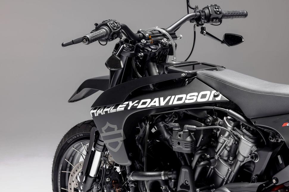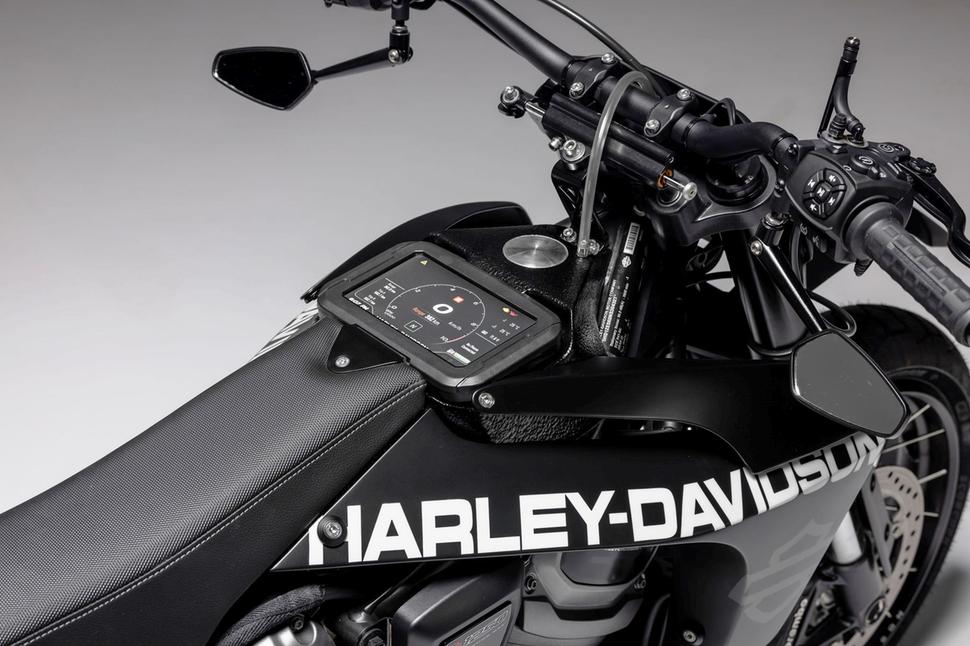 Так что когда мы получили мотоцикл, мы его быстренько раздели от пластика, сняли дуги и прочее, чтобы посмотреть, с чем предстоит иметь дело. Я увидел, что база у него на самом деле довольно компактная. И предложил оформить его в современном скремблерном стиле, как если бы Harley Davidson сделали прототип для настоящих кроссовых гонок, и Джошу идея понравилась, - рассказывает Ноэль.