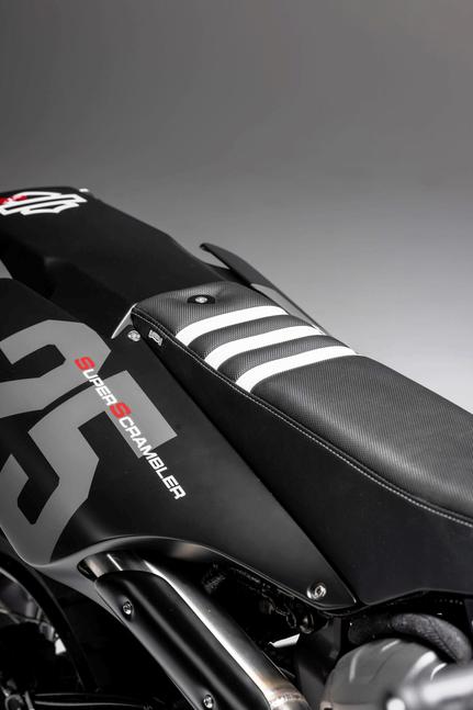 Топливо теперь находится в скрытом баке, расположенном ниже рулевой колонки и вмещающем 8,5 литров. Даже при агрессивной езде запас хода превышает 150км, но Ноэль исхитрился снабдить мотоцикл ещё одним небольшим баком на 2,4 литра, который расположен под двигателем. "Дополнительный бак легко снимается без инструментов для заправки, если это необходимо". Теперь всю эту конструкцию нужно было закрыть стильной, но минималистичной капотировкой, для которой в качестве материала был выбран алюминий. Результат получился просто невероятным: кастомная Pan America имеет абсолютно заводской вид и безупречное исполнение, сочетая в себе стили скремблера и кроссового мотоцикла.