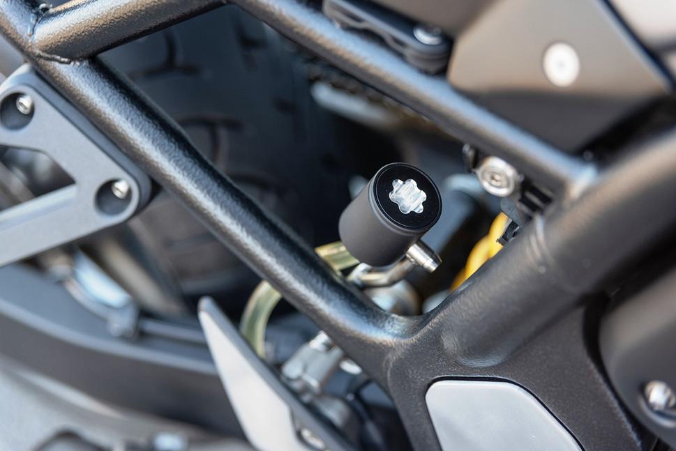 Рама Suzuki Bandit 1200 была выглажена, а подрамник отрезан и отправлен к праотцам. Но вместо того, чтобы делать новый маленький подрамник, Сандер изготовил мощный, способный выдерживать двоих, но при этом намного более симпатичный, чем стоковый. Рама с новым подрамником, центральная подставка и некоторые другие компоненты были отделаны текстурной порошковой окраской, приятно контрастирующей с другими компонентами того же цвета - боковыми крышками, маятником и стаканами вилки.