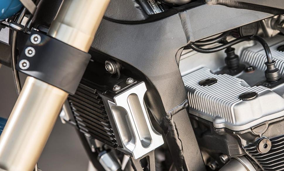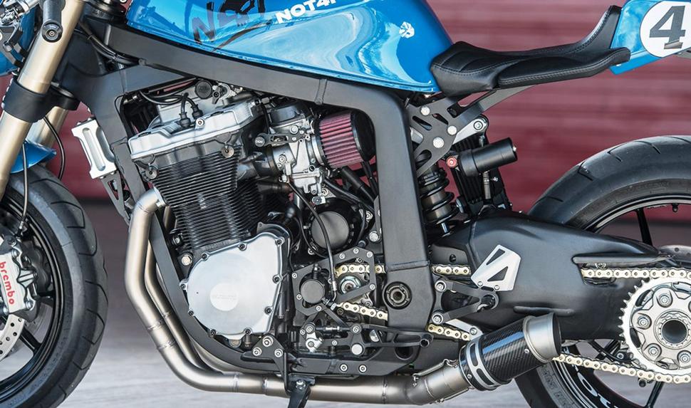 Двигатель обзавёлся 40-миллиметровыми карбюраторами Mikuni с фильтрами K&N и кастомным нержавеющим выпускным трактом 4-в-1-в-2 (вот так вот!). Новая проводка и литий-ионная батарея в хвосте завершают перечень доработок по технике.