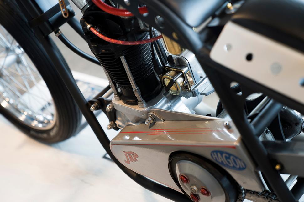 Изначально это был 500-кубовый "Тайп-сикс" (Type 6) от JAP (John Alfred Prestwich) 1953 года, установленный на раму BSA середины пятидесятых. Рама была порезана, вытянута и лишена задней подвески, а передняя подвеска BSA занижена для придания мотоциклу более приземистой осанки.