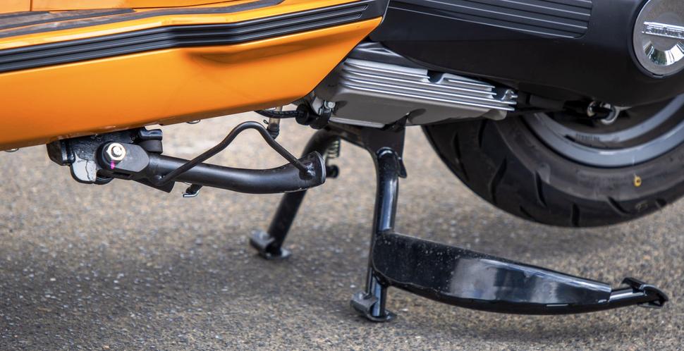 В итоге, шасси Lambretta X300 2025 получилось тяжелее, чем классическая хребтовая рама, но это никоим образом не навредило скутеру. Заявленный вес составляет 160кг (правда, не указывается, сухой или снаряжённый), так что Lambretta достаточно лёгкая: запросто ставится на центральную подставку, при этом на дороге ускоряется быстро и предсказуемо.