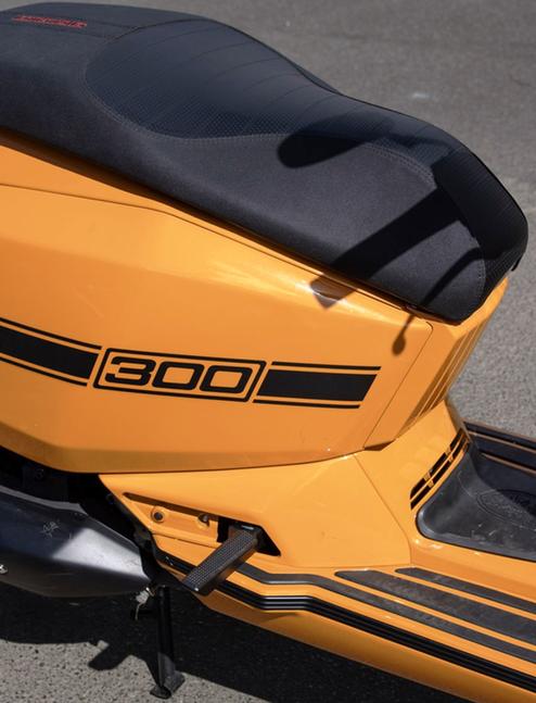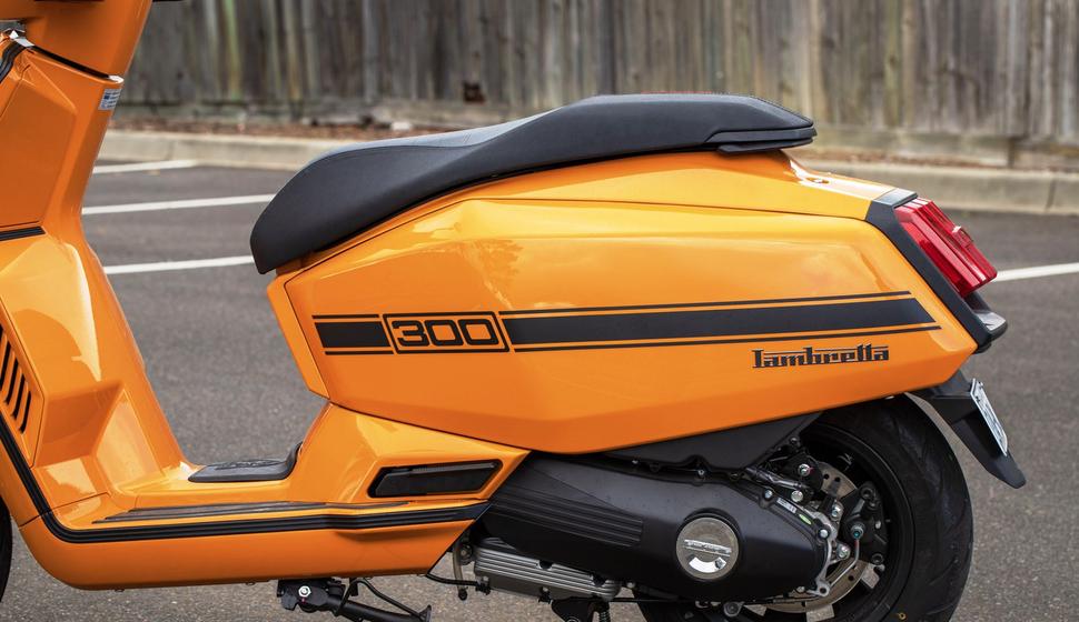 Характерный угловатый кузов Lambretta X300 прекрасно воплотили в современной итерации, включая фирменное фиксированное переднее крыло и прямоугольную фару. Это значит, что ноги вытянуть вперёд не удастся, в отличие от многих современных скутеров, имеющих выемку под передним щитом, но просторное сиденье позволяет найти удобное положение с любым ростом.