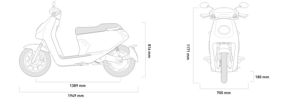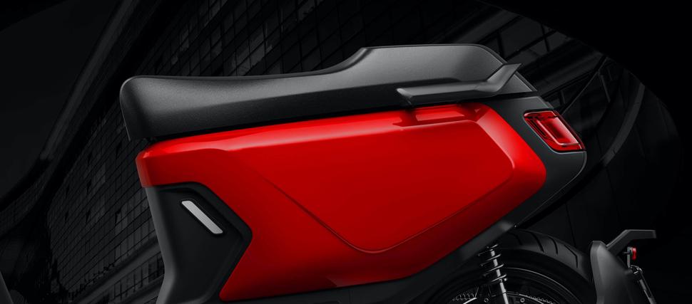 Важным аспектом в разработке NIU MQi GT стало удобство эксплуатации с пассажиром. Сиденье длиной 782мм достаточно просторно для двоих, а при необходимости скутер можно дооснастить опциональной пассажирской спинкой. Также как опция доступен центральный кофр, удобный, например для поездок за продуктами. Скутер весит лишь 115кг вместе с батареями, а везти способен 269 кило. Впечатляет!