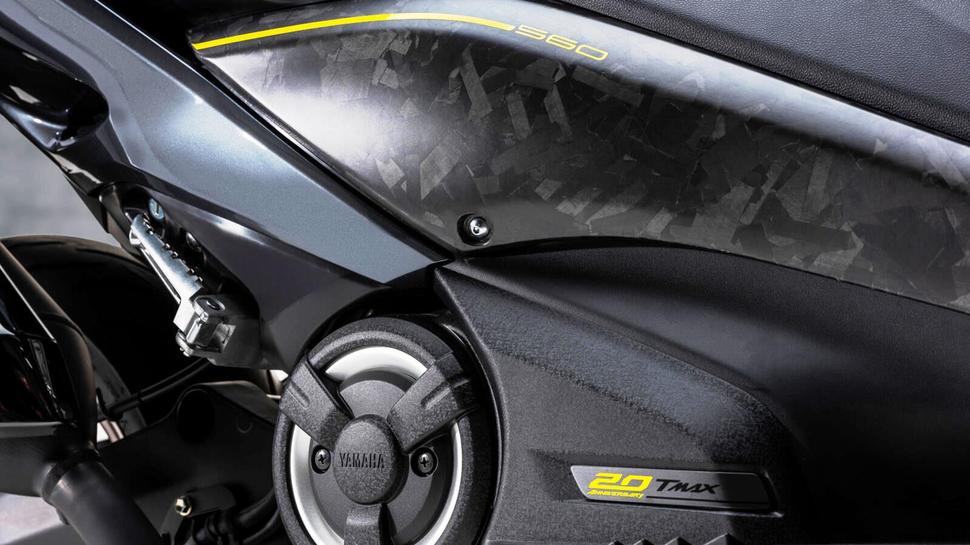 Каждый экземпляр TMAX 20th Anniversary будет оснащён индивидуальным номерным значком, обозначающим номер экземпляра в ограниченной серии из 560 штук. Вместе с уникальным рисунком карбонового обвеса номерная табличка придаёт каждому экземпляру неповторимую индивидуальность.