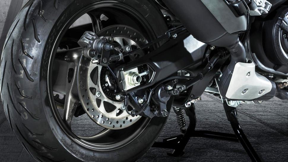 Пятое поколение TMAX было выпущено в 2015 году, и среди прочих особенностей его отличает перевёрнутая вилка мотоциклетного типа и радиальные тормозные суппорта, подчёркивающие топовую комплектацию.