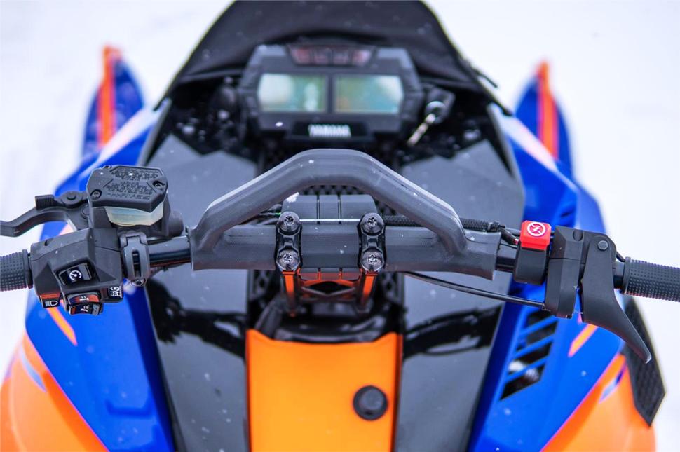 На левой части руля Yamaha Sidewinder X-TX SE 2020 года расположен изящный блок переключателей, на котором можно регулировать многоступенчатый обогрев рук и пальцев. Задний ход также активируется кнопкой на левом пульте. В центре расположен многофункциональный дисплей. Эргономичный рычаг дроссельной заслонки имеет аварийный выключатель. Обновленный тормозной цилиндр и новый композитный тормозной рычаг обеспечивают хорошую обратную связь при торможении.