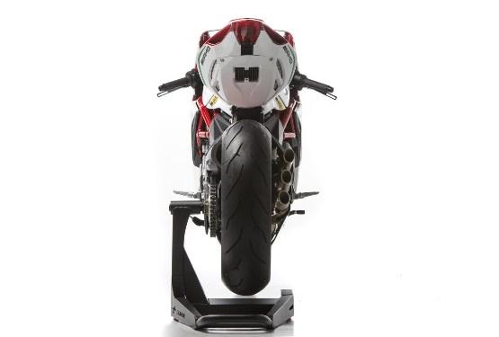 MV Augusta F3 RC будет иметь ту же цветовую схему, что и гоночный оригинал, задние подкаты, зеркальные алюминиевые пластины, покрытие для заднего сиденья и автограф президента MV Agusta на топливном баке. Цена ещё не объявлена.