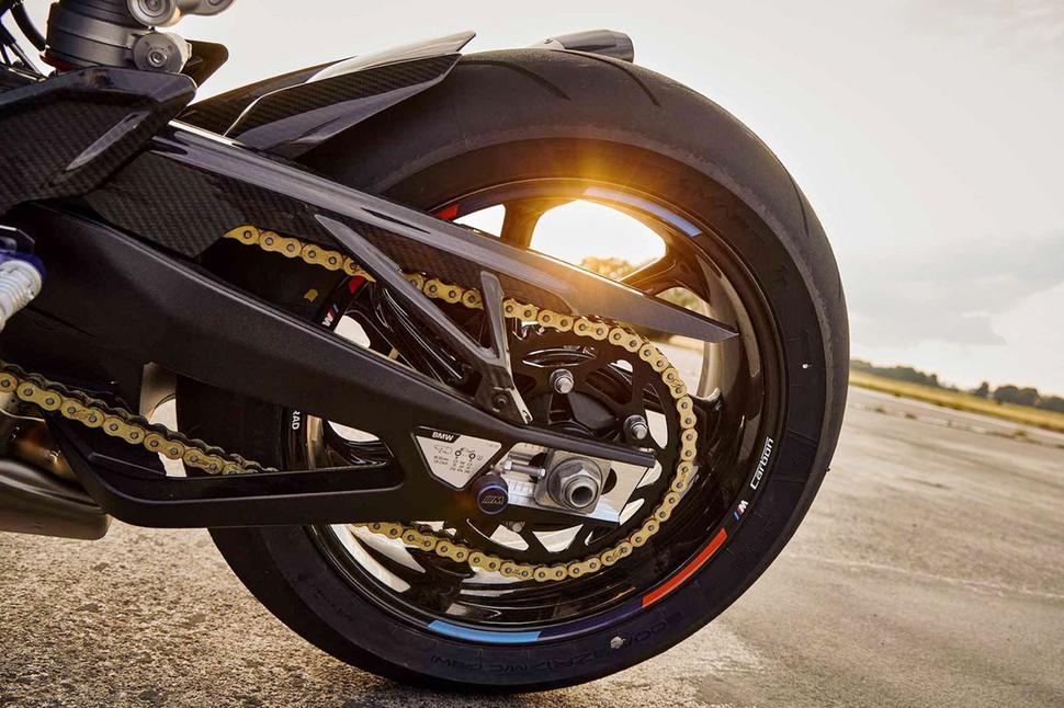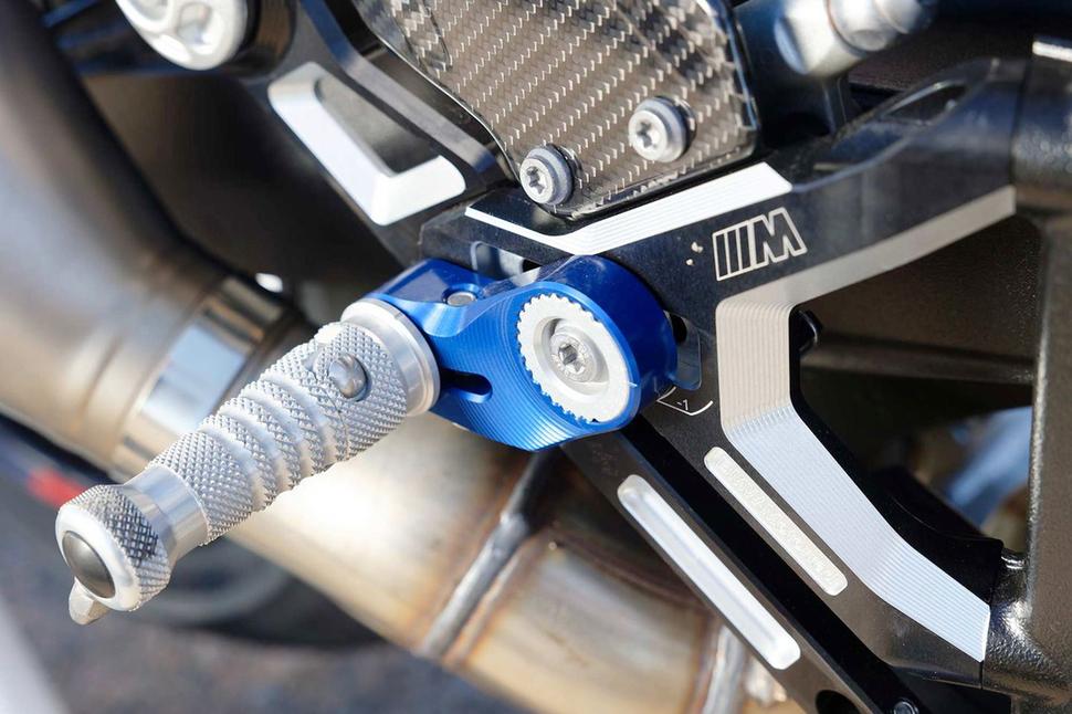 Примерно так же дела обстоят и с колёсами: штатно мотоцикл поставляется с литыми алюминиевыми дисками, но в составе пакета M Package доступны на выбор либо кованые алюминиевые, либо карбоновые, и цена при этом не меняется. Тестовый мотоцикл оборудовали шикарно отделанными карбоновыми колёсами в ливрее M Motorsport по краям. Ещё один полезный компонент пакета M Package - лёгкая литий-ионная батарея, снижающая вес сразу на пару килограммов и ощутимо улучшающая управляемость. Также в состав этого комплекта опций входят фрезерованные регулируемые спортивные подножки с рычагами, выглядящие чрезвычайно хитроумно и предлагающие массу вариантов посадки. Тем, кто хочет изменить порядок передач с дорожного на трековый, на это потребуется буквально пять секунд.