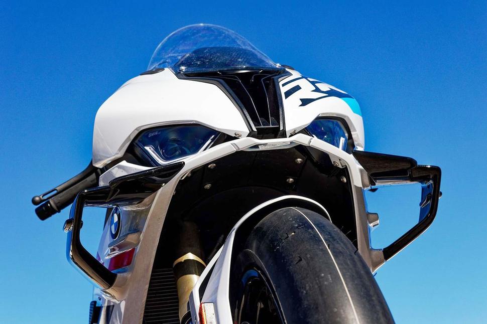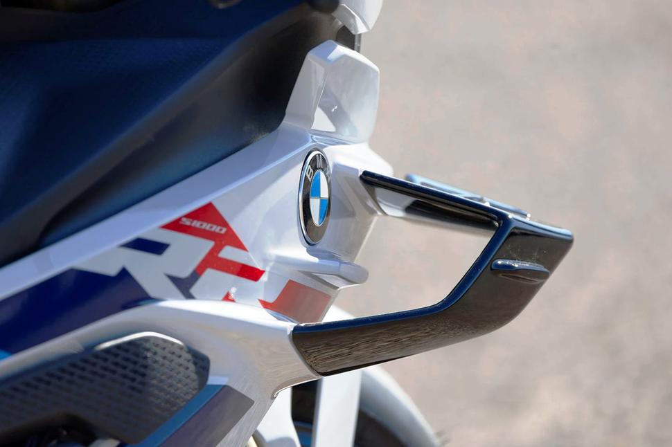 Одна из самых очевидных особенностей нового BMW S 1000 RR - это пара аэродинамических крыльев, растущих из переднего обтекателя. Как и у M 1000 RR, от которого они унаследованы, винглеты используются для улучшения характеристик, а не только для визуального эффекта. На гоночном треке вилли на открытии газа очень мешают управлению, и с таким мощным мотором они не редкость. Да, их можно гасить при помощи электроники, снижая тягу двигателя, но это снижает и ускорение. Однако, BMW применили уроки, извлечённые из гонок WSBK, к этой модели. На скорости крылья создают прижимное усилие на переднюю часть до 10кг, снижая тем самым уровень вмешательства трекшн/вилли-контроля и улучшая разгон.