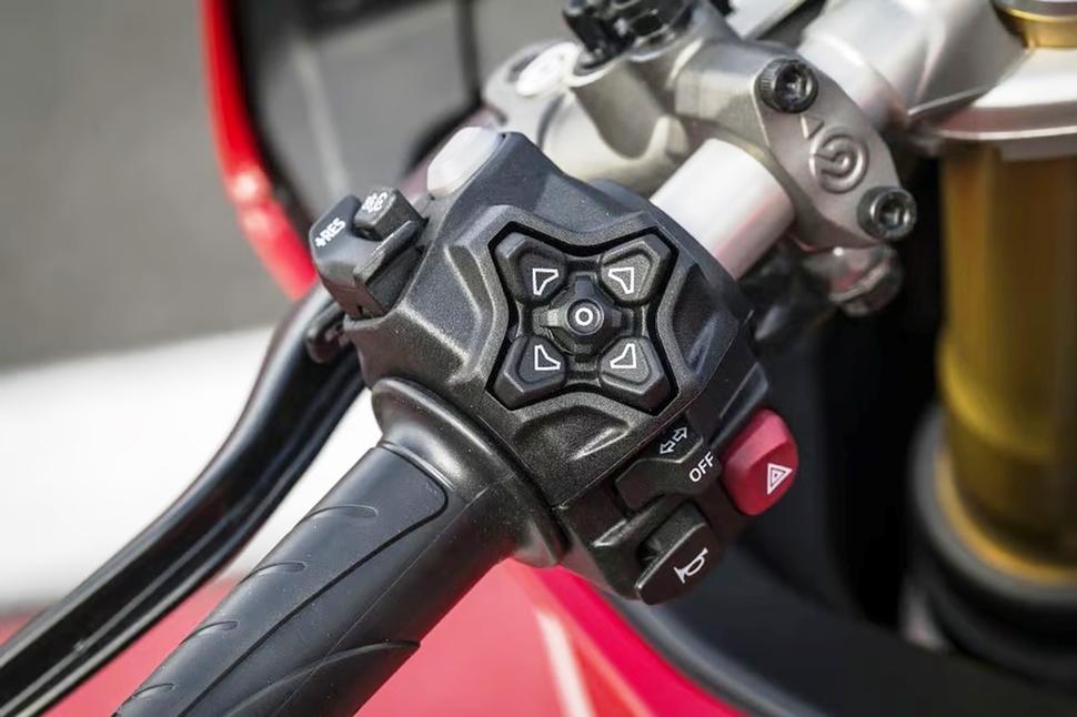 На нём нет хитроумного комбибрейка, как на флагманском Panigale V4. А двигатель легко может превысить невысокий порог отсечки, если переключиться вниз на высокой скорости. Так что приходится терпеливо и внимательно работать коробкой, порой преодолевая сопротивление квикшифтера при помощи рычага на левой грипсе и помогая проскальзывающему сцеплению беречь мотор от перекрута.