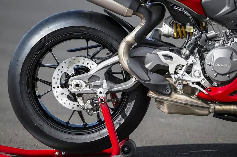 Новый двигатель остался короткоходным, крутится выше 11000об/мин, но в остальном он радикально отличается от прошлых Panigale. Он менее экзотичен и более практичен, отражая заметный сдвиг в приоритетах. Сотрудники Ducati неоднократно упоминали, что "он стал намного лучше в плане теплового комфорта". На языке маркетинга это означает, что "выхлопная труба больше не будет поджаривать ваши бёдра".