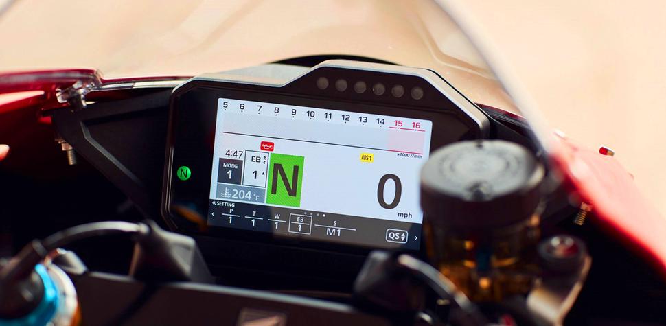 Кроме того, пакет бортовой электроники включает наклонную ABS с контролем отрыва заднего колеса и двумя режимами (Спортивный и Трековый), три уровня вилли-контроля и лаунч-контроль (он же Режим Старта), позволяющий райдеру просто открыть газ во время старта гонки и сосредоточиться на модуляции сцеплением.