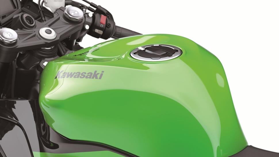 Kawasaki обновили внешний вид спортбайка, и первое, что бросается в глаза - это вырезы переднего крыла, которые, судя по всему, нужны только для снижения неподрессоренной массы на передней оси. Двойные диодные фары всё так же расположены прямо под центральным воздухозаборником, но стали ниже и более плоскими, вписываясь в угловатый внешний вид новой модели, контрастирующий с более благообразным предыдущим поколением. Угловатость дизайна коснулась всего аппарата в целом, но особенно это заметно по передней и боковой капотировке, а также по панелям подрамника чуть ниже края пассажирского сиденья.