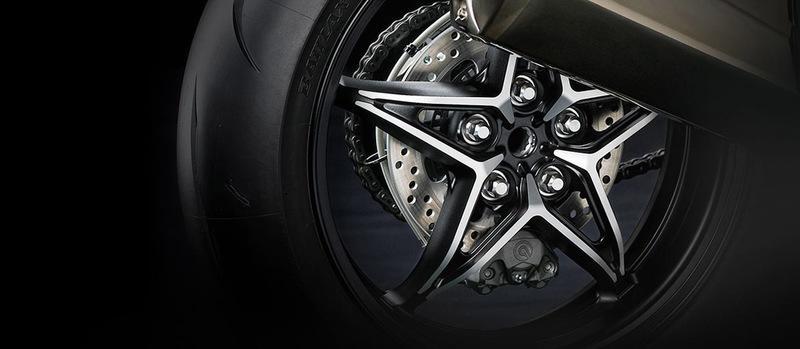 Двойные полуплавающие 330-миллиметровые дисковые тормоза от Brembo укомплектованы суппортами Brembo Stylema и KIBS ABS. Колёсные диски в стиле Ninja Star обуты в резину Bridgestone Battlax RS11 Sport, заднее колесо подвешено на односторонний маятник.