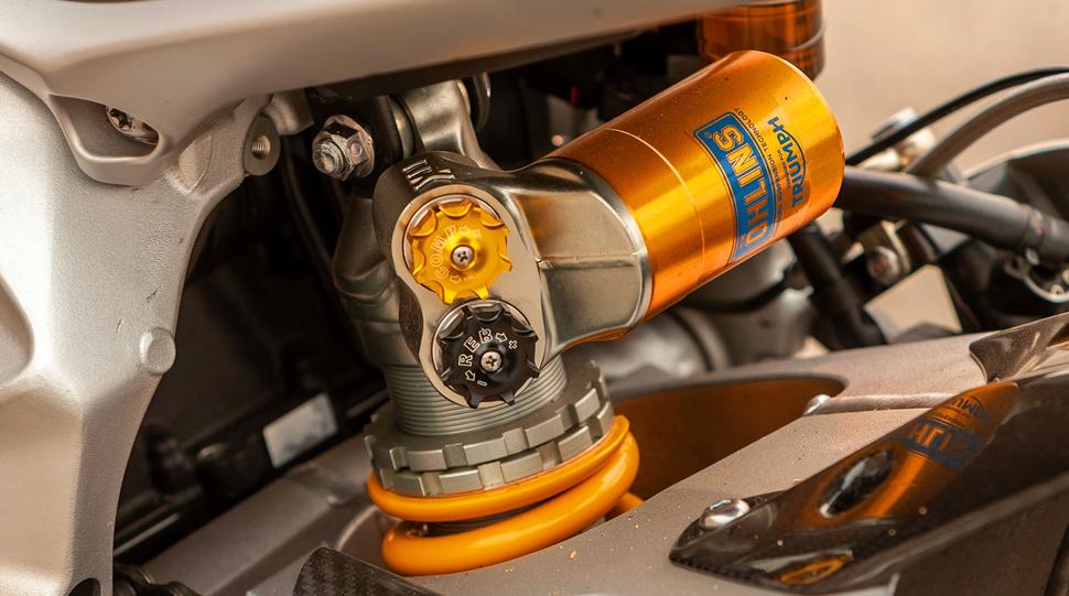 Несложно догадаться, что подвески Ohlins на треке полностью удовлетворяют самым взыскательным вкусам - сглаживание неровностей и обратная связь ровно такие, каких и ждёшь от компонентов маститого шведского бренда. Задний амортизатор TTX особенно понравился тем, что сглаживание отбоя и сжатия настраивается с помощью двух регуляторов, удобных даже в перчатках.