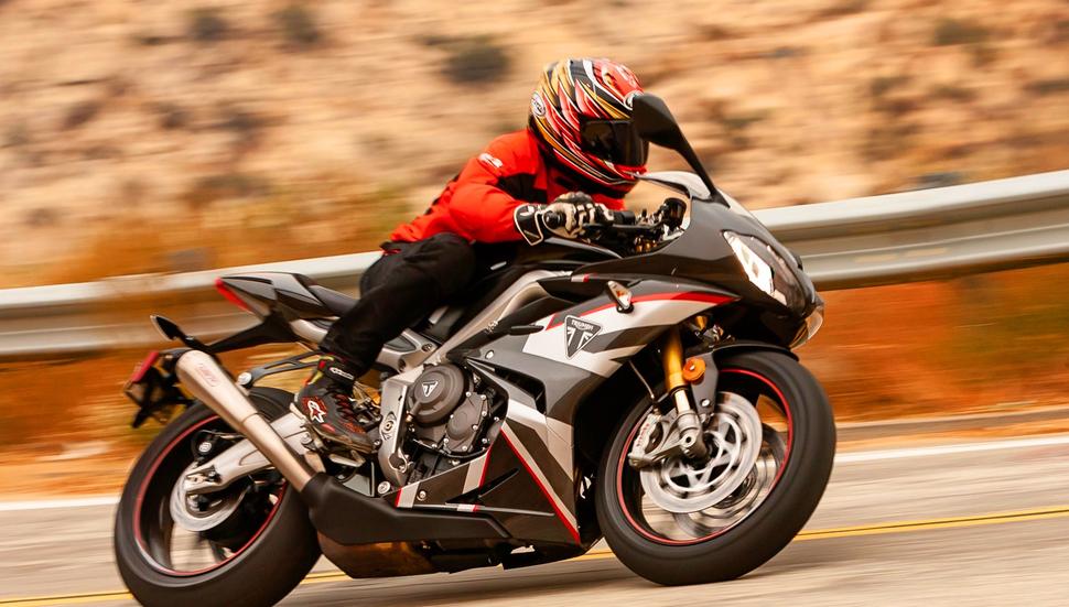 Если уж ездить на спортбайке по дорогам, Triumph Daytona 765 будет далеко не худшим выбором: не слишком низкие клипоны (по меркам спортбайков), не чересчур согнутые колени, объём бака в 17 литров позволяет проехать неплохую дистанцию между заправками (если уж того хочется).
