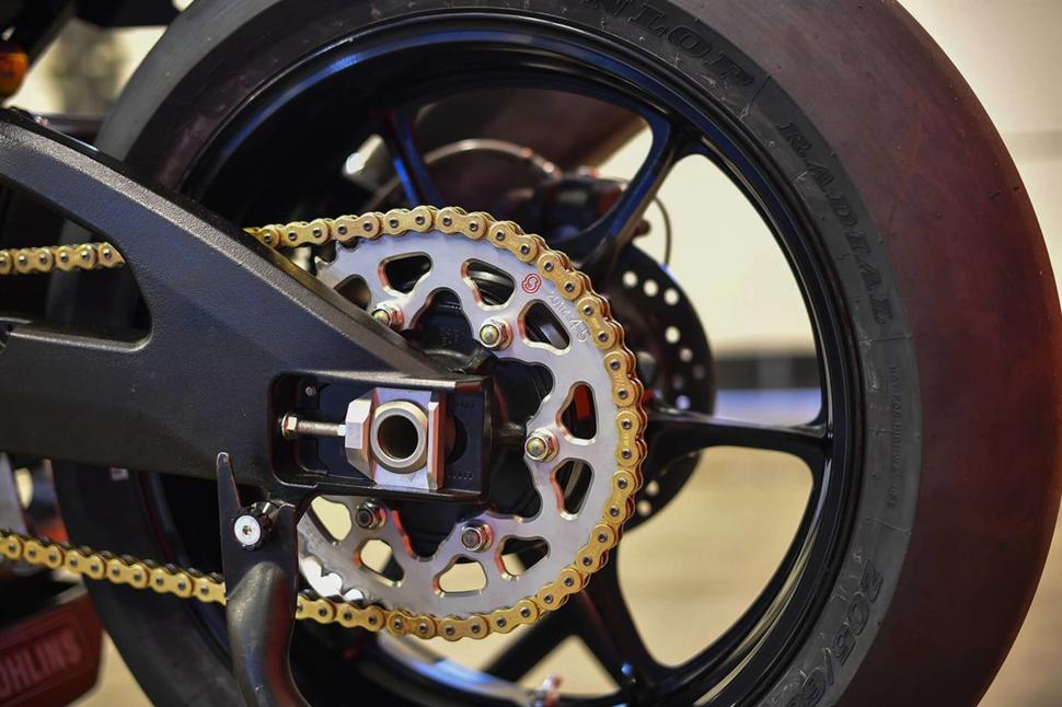 Резина предоставлена Dunlop - KR108 спереди и KR109 сзади. Прочие компоненты включают в себя клипоны Ergal, гоночные пульты в стиле MotoGP, ручку газа Evo Rapid, гоночный воздушный фильтр K&N, комплект звёзд и цепи GP Racing DID Step 520 Sprocket и другое.