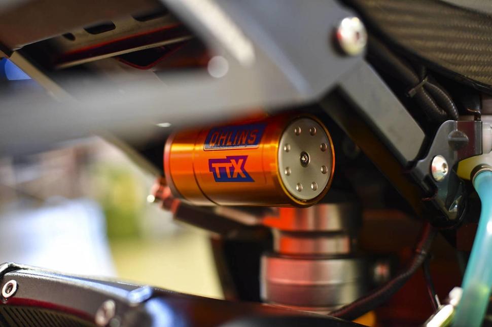 Ohlins предоставил картриджи для амортизаторов NIX 30, стоящие спереди, а для заднего моноамортизатора - картридж TTX GP. Даже гоночный демпфер руля произведён Ohlins. Задняя подвеска выполнена в виде вилки Showa BPF, а передняя - в виде моноамортизатора BFRC lite, созданых для MotoGP.