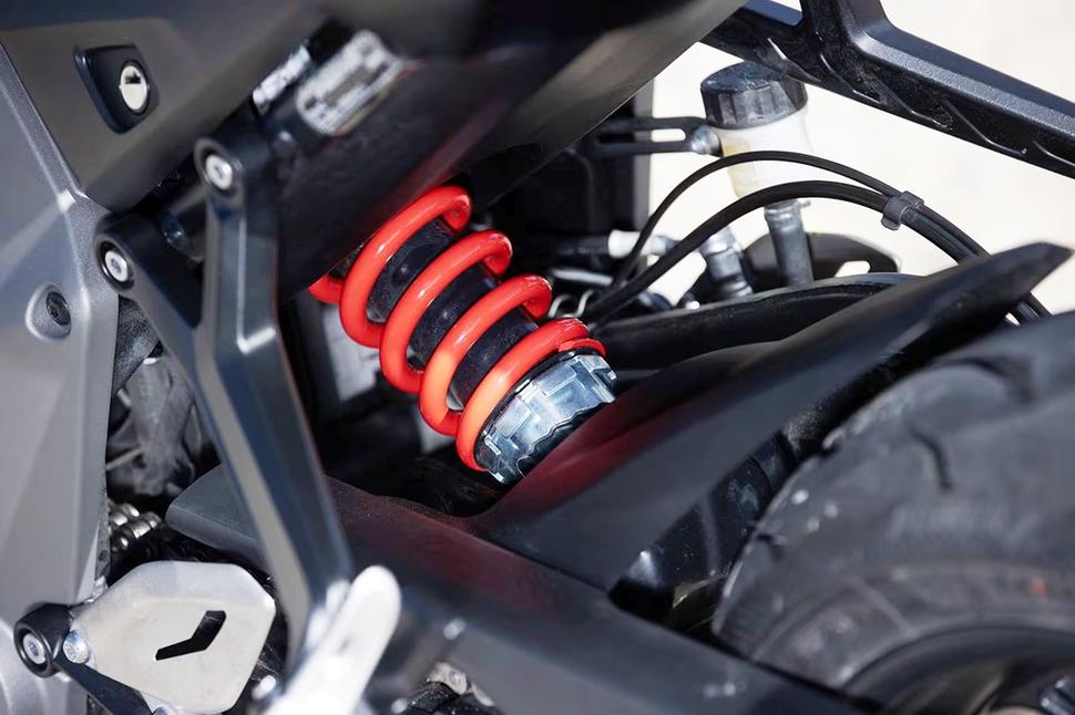 По городу с плохим асфальтом, лежачими полицейскими и выбоинами подвески отрабатывают мягко и комфортно, тут жаловаться не на что. Мотоцикл удобный и не слишком жёсткий, каким мог бы быть на трековых подвесках. То же можно сказать и про извилистую дорогу в среднем темпе, где подвески обеспечивают комфортную езду. Но при действительно агрессивной езде ограничения подвесок начинают проявляться. Пришлось затянуть преднатяг задней пружины, но с вилкой ничего не поделаешь. На высокой скорости ей просто не хватает сглаживания, чтобы смягчать сжатие на торможениях, не сглаживается и быстрый отскок после этого. В целом, хоть подвески и простые, они неплохо справляются со средним темпом езды, учитывая их цену и целевую аудиторию, которая явно не относится к профессионалам трековой езды.