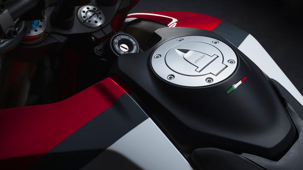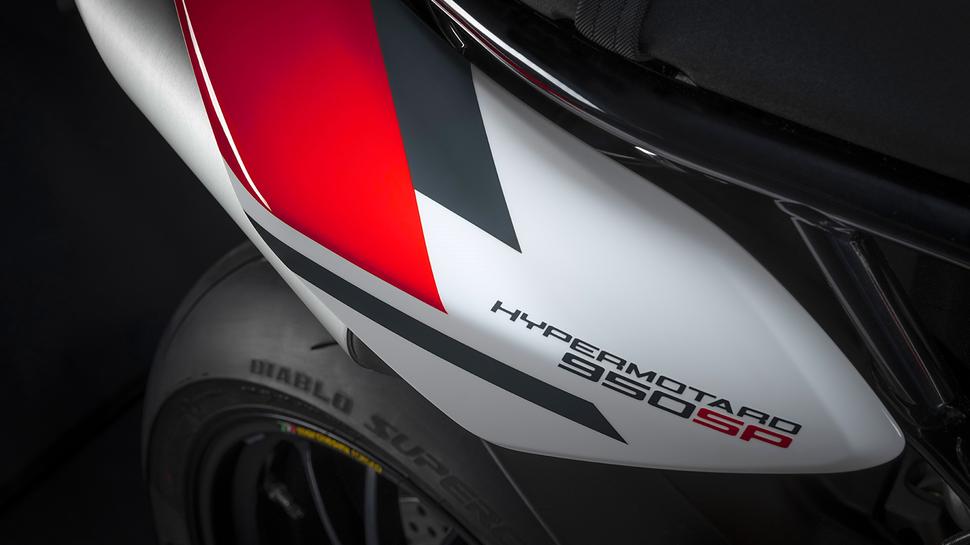 Премиальная версия Hypermotard получит новый дизайн с полосками. 950 SP отличается от своих сородичей полновесными подвесками Ohlins, коваными колёсами Marchesini, квикшифтером DQS EVO, а новая ливрея сделает его ещё более подходящим для трека. Красно-графитово-белая расцветка соответствует цветам Ducati Corse и подчёркивает амбиции Hypermotard SP.