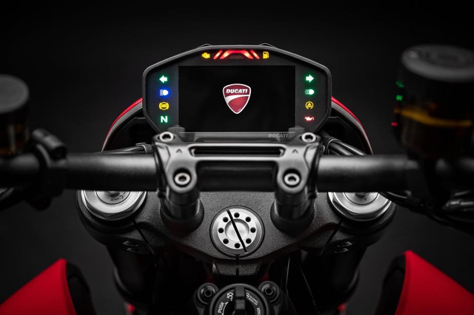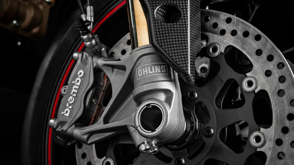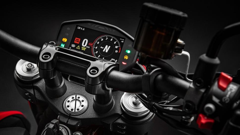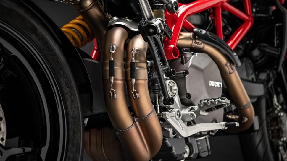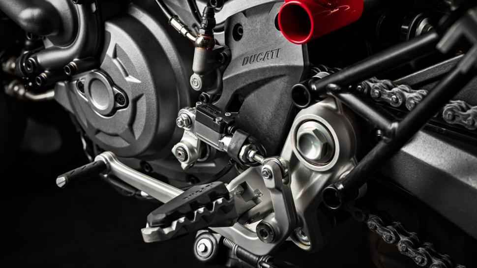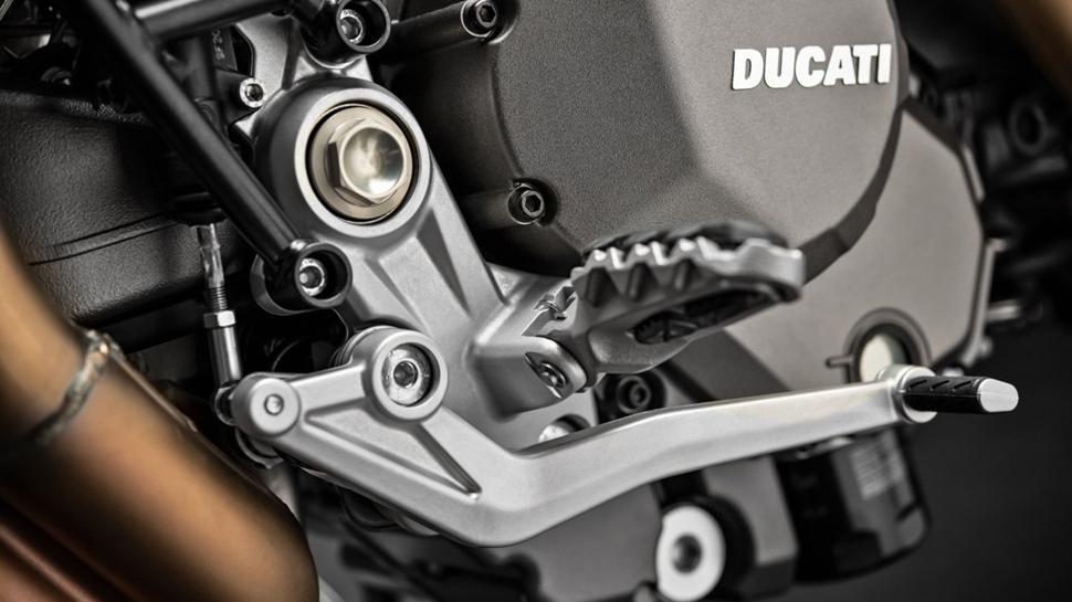 Пара 53-миллиметровых дросселей управляются с помощью электронной ручки газа, сигнал которой обрабатывается ЭБУ с учётом выбранного режима езды, а системы анти-вилли и трекшн-контроля помогают удержать мощность двигателя в узде. Как обычно, благодаря десмодромному приводу Ducati клапана не подвержены зависанию на высоких оборотах.