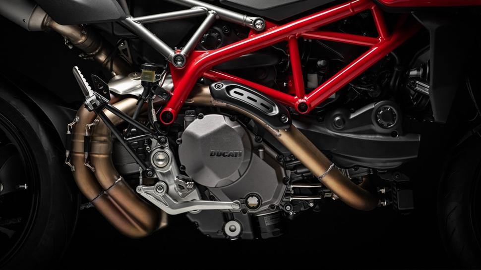 Ducati оснастила эту динамичную парочку супермото своим 11-градусным L-twin’ом Testastretta. Хотя кубатура двигателя не менялась, благодаря ряду доработок он стал выдавать больше мощности, составляющей теперь 114 л.с. на 9000 об./мин и 96 Нм на 7250 об./мин. Максимальная скорость заявлена в 281 км/ч. Движок с диаметром цилиндров 94 мм и ходом поршней в 67,5 мм имеет рабочий объём 937 куб. см и внушительную степень сжатия 13,3:1. Конечно, с такой степенью сжатия заправлять его нужно высокооктановым топливом.