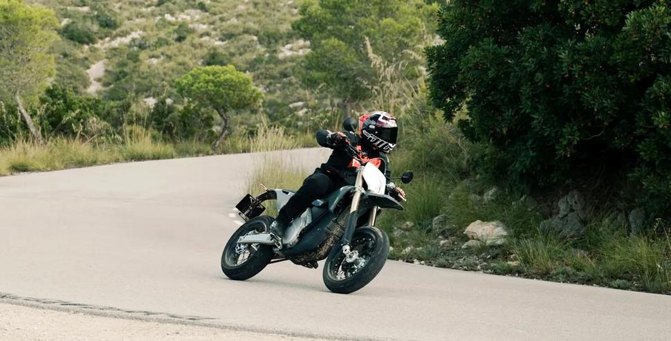 Перед выездом настроили режимы езды так, чтобы последовательно увеличивать мощность с разумных 40лс до явно неразумных 80, при стандартных настройках рекуперации. Мотоцикл послушен и покладист как мягкий и пушистый Suzuki DR-Z4SM на низких настройках мощности. Он аккуратно лавирует в потоке, экономя заряд батареи. И похоже, что 60лс (пиковая мощность базовой версии) - это ровно та цифра, которую можно назвать идеальной. При ней мотоцикл достаточно лихо едет, практически выпрыгивая с апексов, тянет так, как бензиновым мотоциклам остаётся только мечтать, притом прямо с нуля. В этом состоянии он напоминает гоночный KTM 450 SMR или (если говорить о дорожных вариантах) - то по динамике, отклику и прочему SM похож на Ducati Hypermotard 698 или KTM 690 SMC R, только куда более лёгкий. Конечно, запас хода при режиме 60лс уменьшится, но это того стоит.